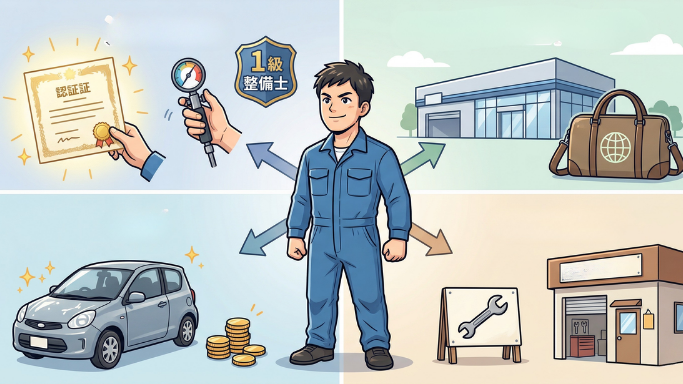 - 一級自動車整備士:最上位国家資格。保有者は全国でもまだ少なく、希少価値が高い