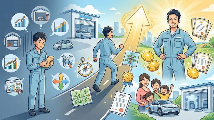 - EV・HV整備スキルの習得は、今後の年収アップへの先行投資。今動くほど市場価値が高まる。