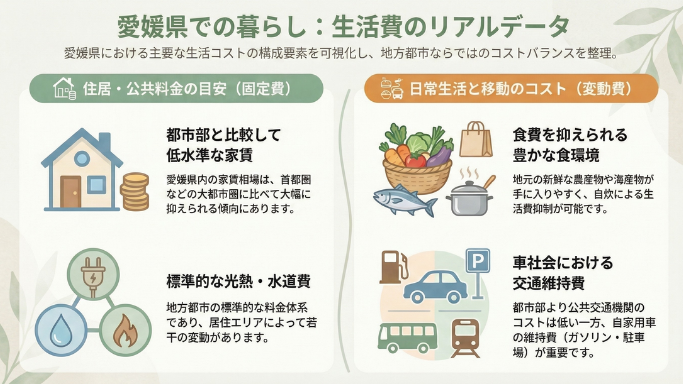 - 愛媛は温暖な気候・都市インフラの充実・生活費の安さが揃った、移住転職先として非常にバランスの良い選択肢