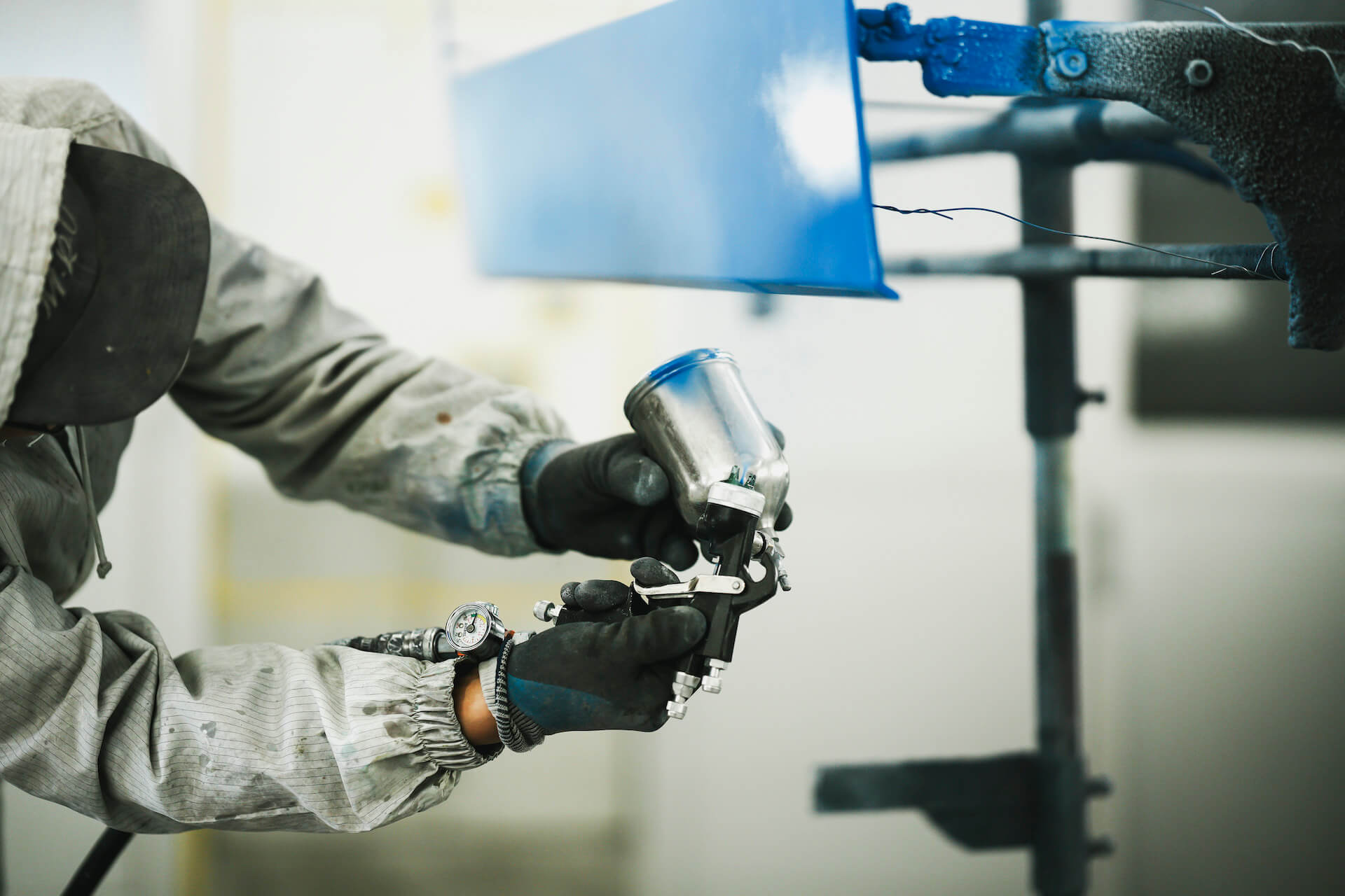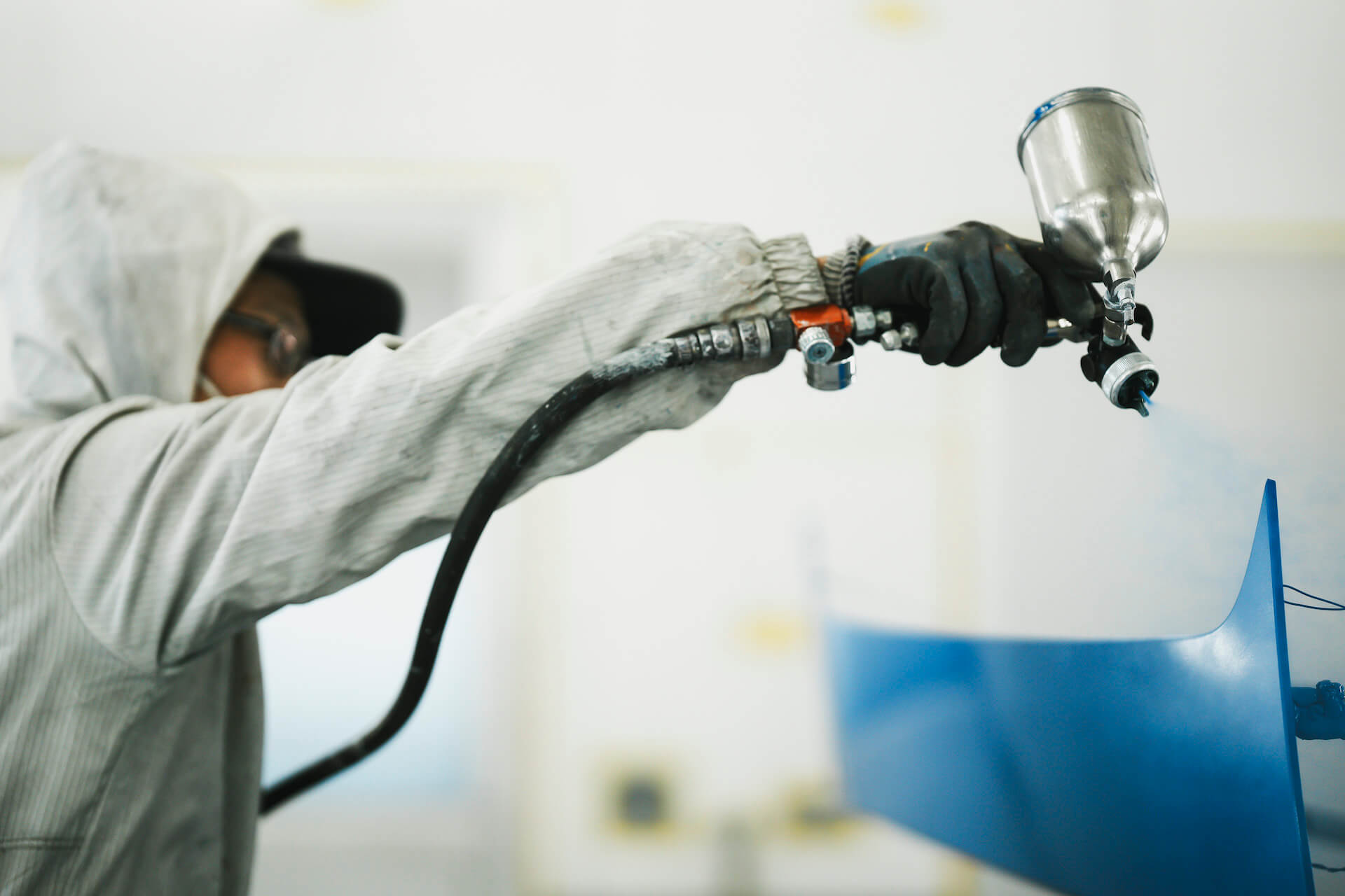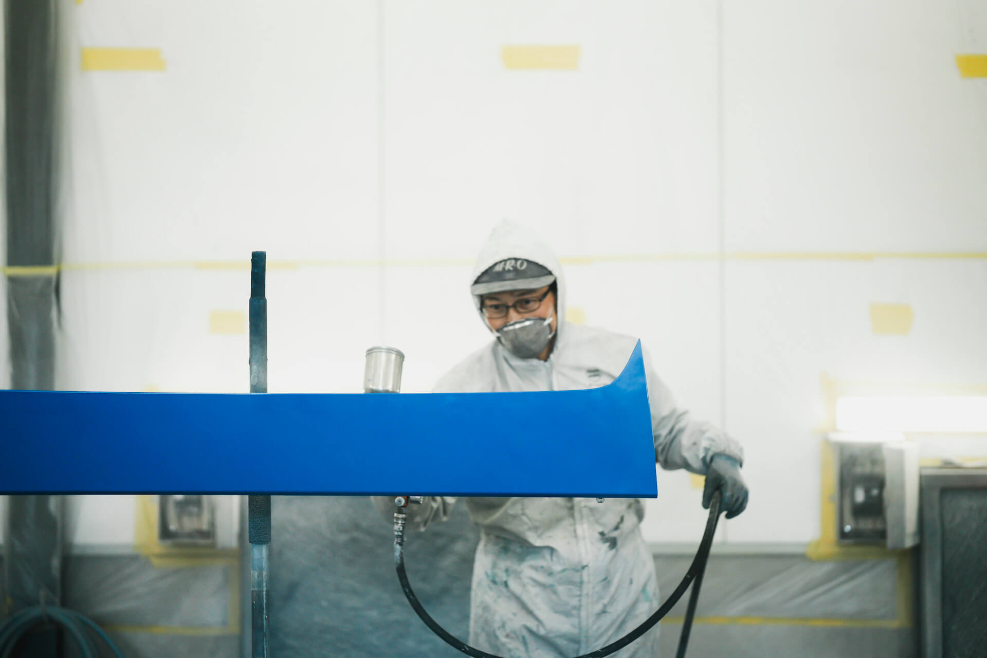 塗装作業に使用される、塗料を均一に塗布できる専用のブースでムラなく塗装します。