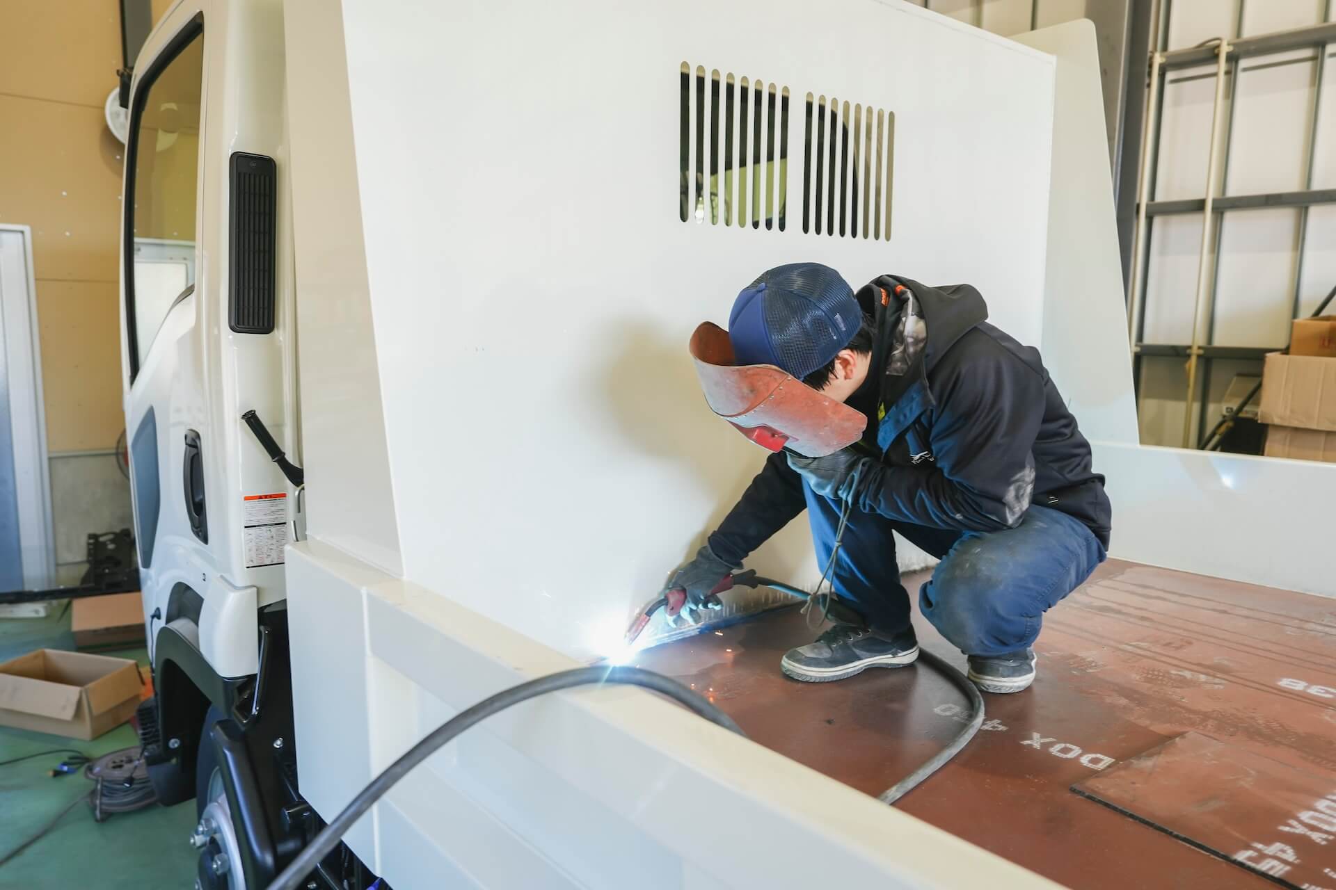 車体の修理や補強に使用される溶接作業を行うための機器です。確かな技術で修理します。