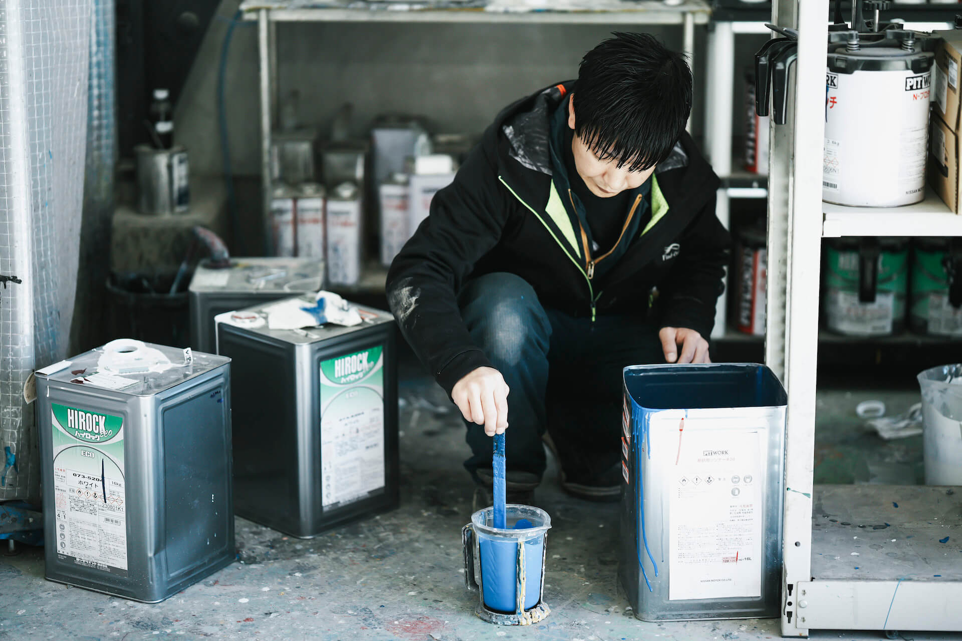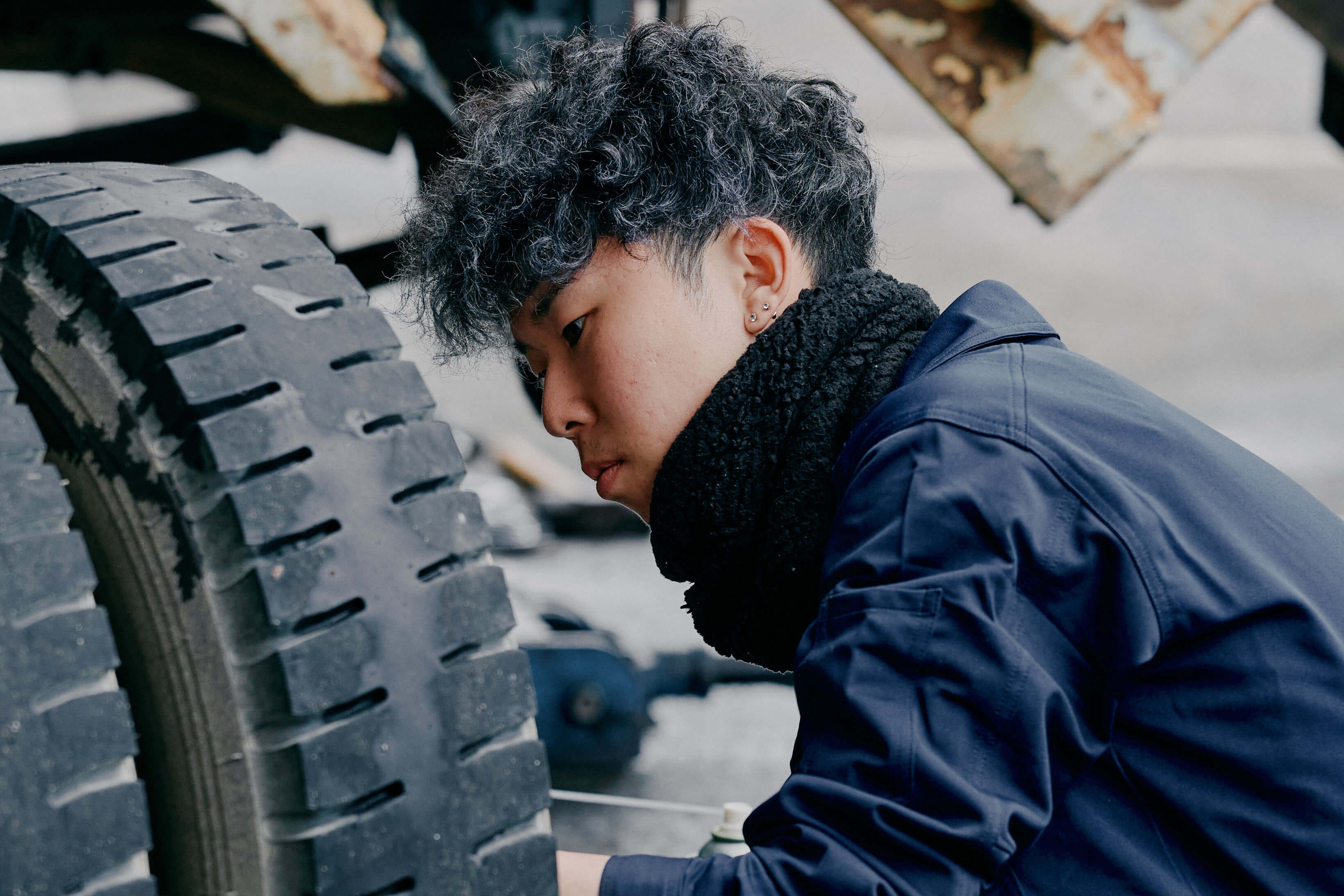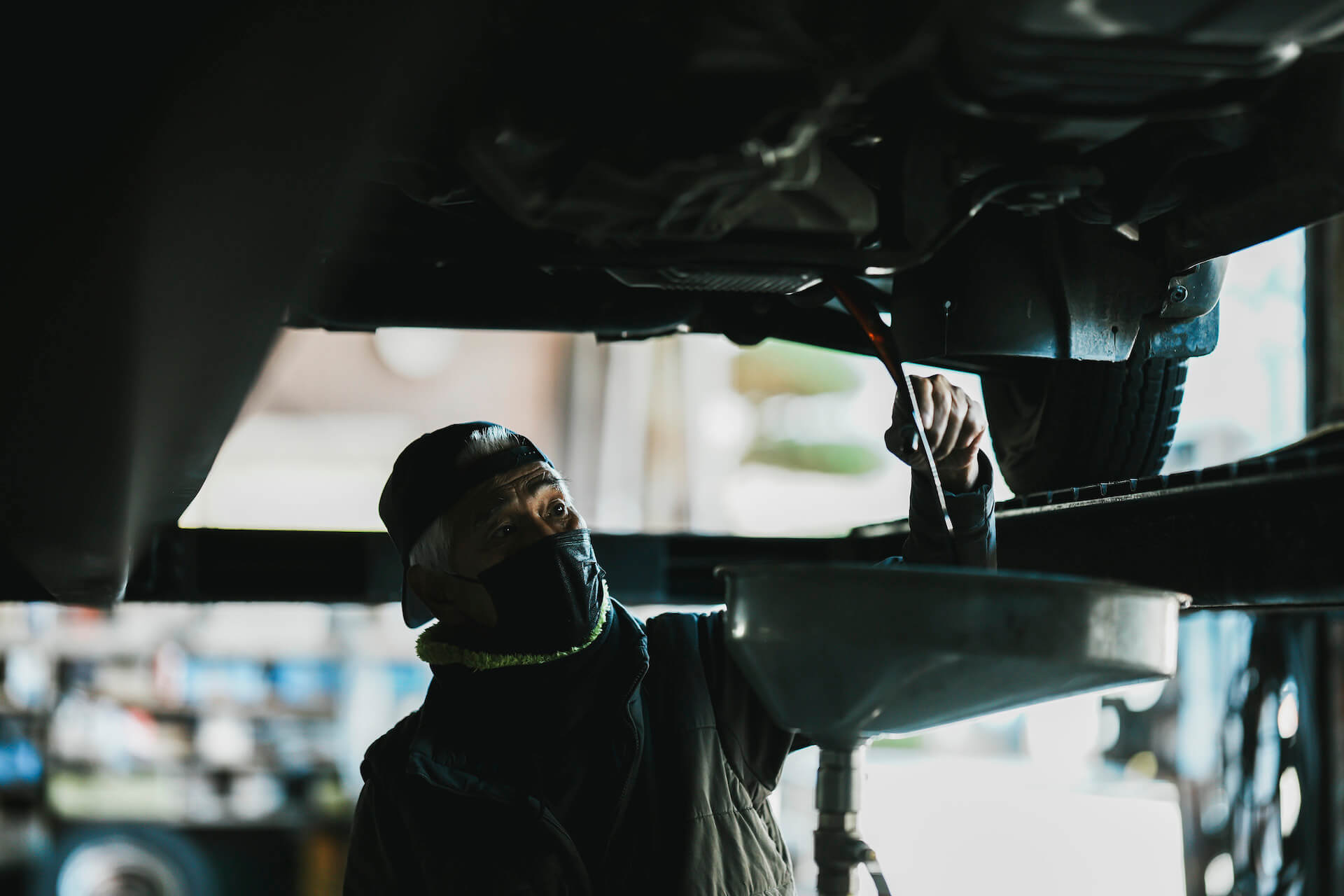 乗用車だけに限らず、大型トラックの架装、点検等多様な作業に携