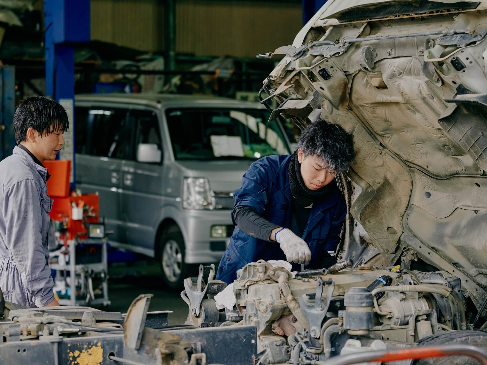 指定自動車整備事業者として道路運送車両法の保安基準に適合しているかどうかを点検・検査します。軽自動車から大型トラック・大型特殊車両などの幅広い車種を取り扱い、次回の点検までお客様に安全で快適に運転していただけるように作業を行っています。